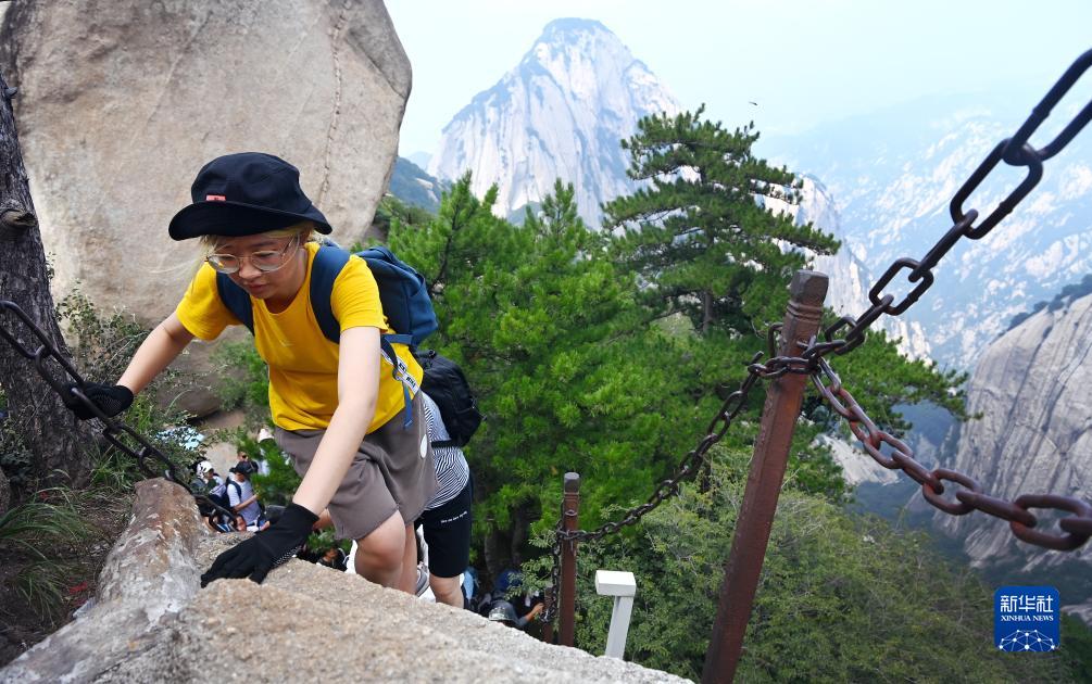 进入暑期旅游旺季,位于陕西省渭南市的西岳华山迎来五湖四海的游客。据了解,自7月以来,华山景区日均游客接待量已超过2万人次。