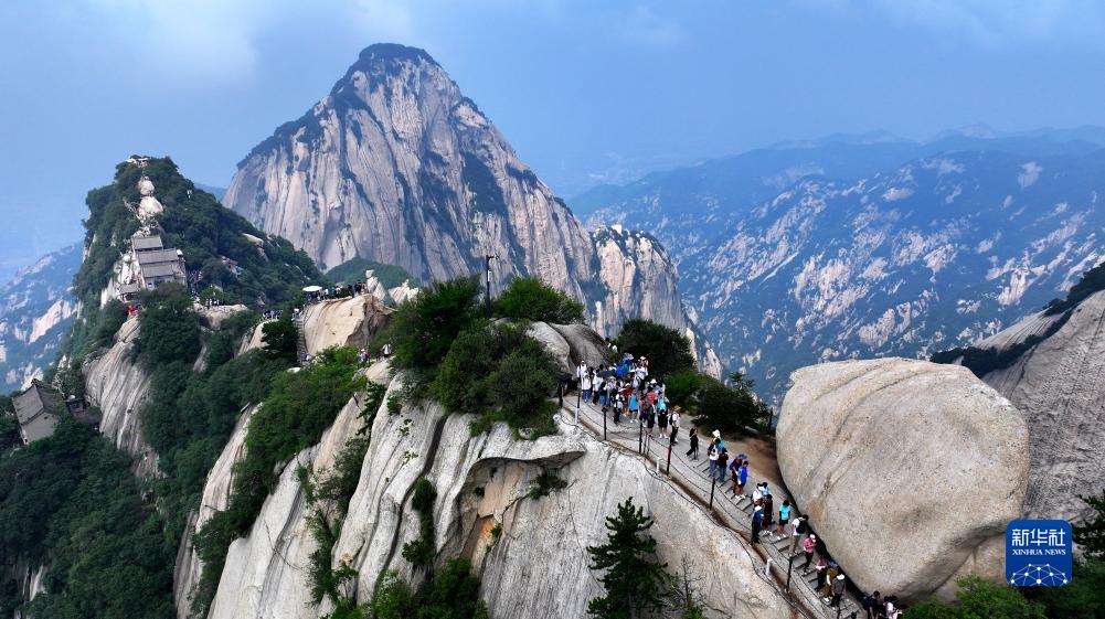 进入暑期旅游旺季,位于陕西省渭南市的西岳华山迎来五湖四海的游客。据了解,自7月以来,华山景区日均游客接待量已超过2万人次。