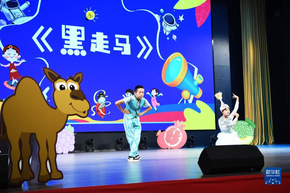 8月10日,在河南省科技馆新馆,夏令营学生在开营仪式上表演节目。
