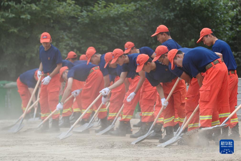 8月11日,在黑龙江省尚志市东浦公馆小区附近,哈尔滨市森林消防支队的消防员在清理道路。