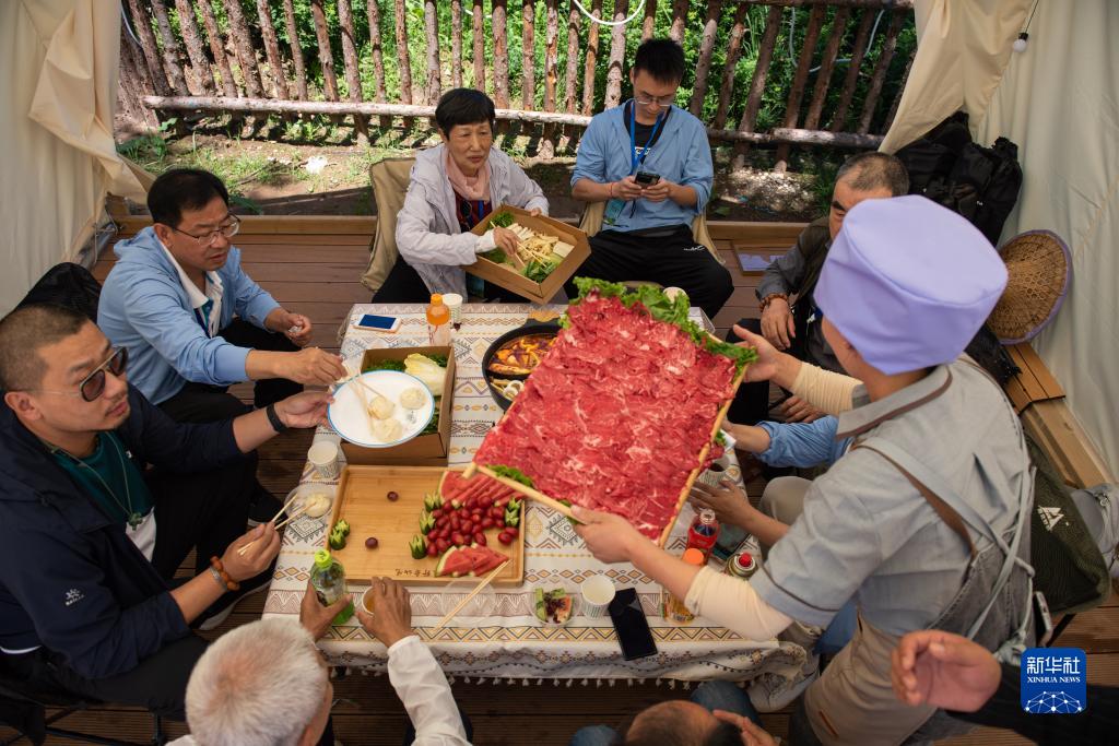 8月12日,游客在宁夏固原市泾源县大湾乡杨岭村品尝当地美食。