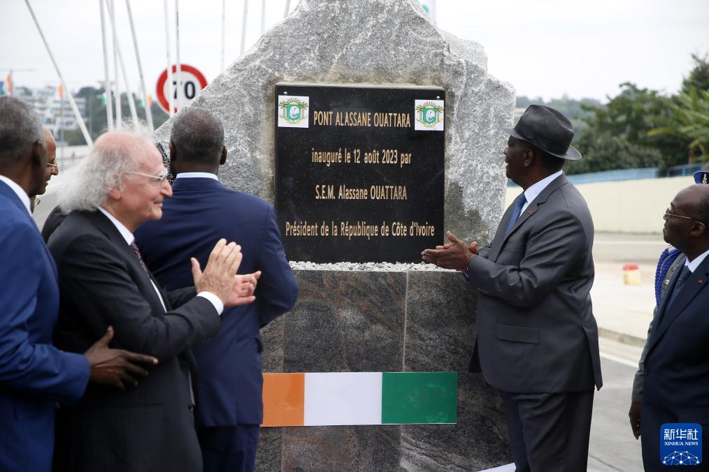 8月12日,在科特迪瓦经济首都阿比让,科特迪瓦总统瓦塔拉(右二)为科科迪桥揭幕。新华社发(伊万·宋摄)