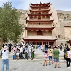 8月9日,游客在莫高窟参观游览。新华社记者 范培珅 摄