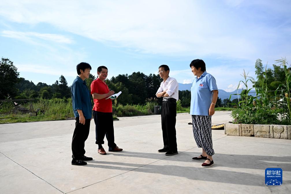 8月11日,在安徽天马国家级自然保护区天堂寨管理站,王克东和高开玉向村民宣传森林防火知识。