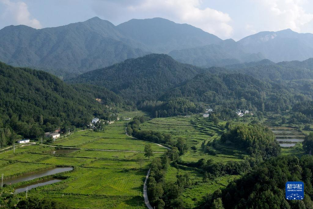 这是8月12日拍摄的安徽天马国家级自然保护区天堂寨管理站一角(无人机照片)。