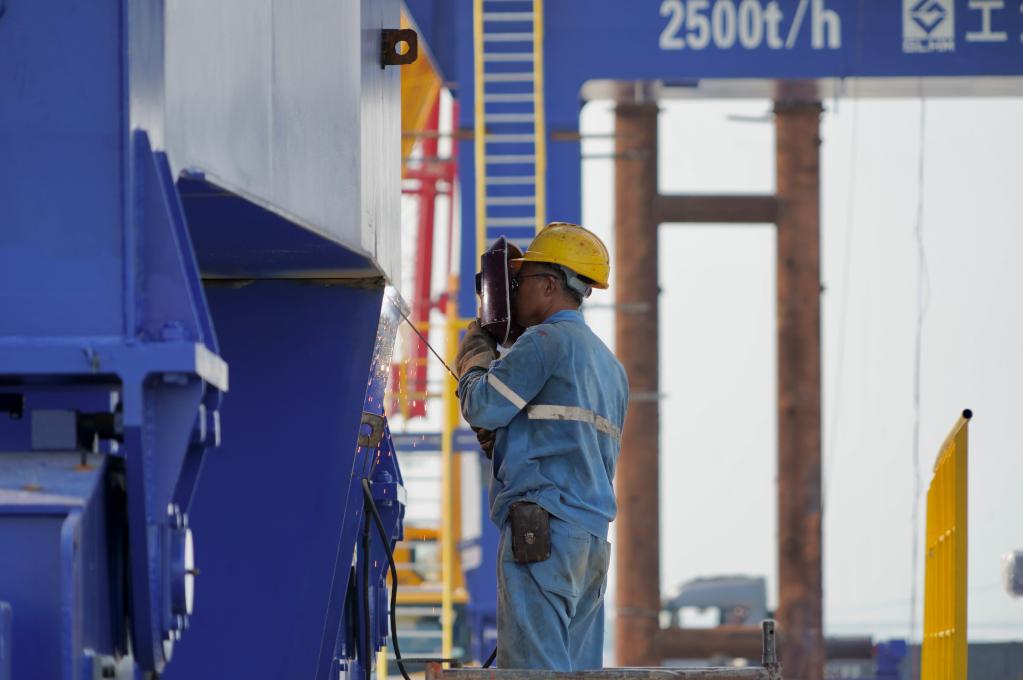 黄石新港三期工程建设如火如荼,工人正在加紧作业。(黄醒尘 摄)