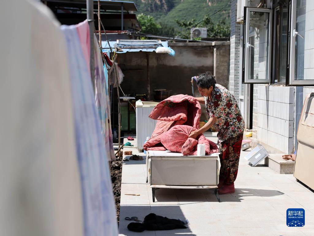 8月16日,河北涞水县九龙镇北龙门村的村民在晾晒被褥。