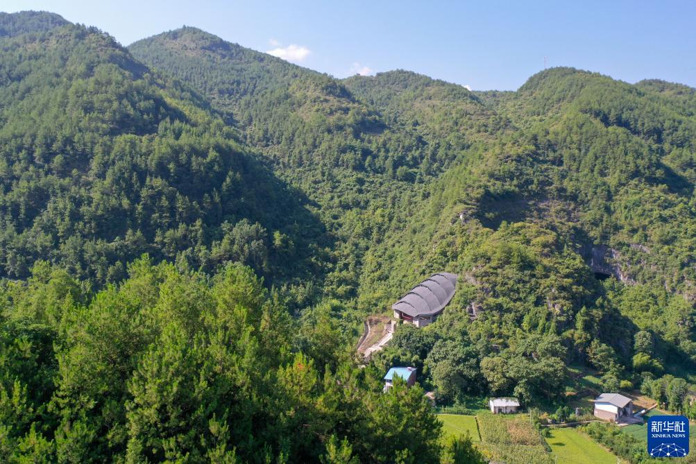这是8月16日在重庆市巫山县庙宇镇拍摄的龙骨坡遗址考古发掘区(无人机照片)。新华社记者 唐奕 摄