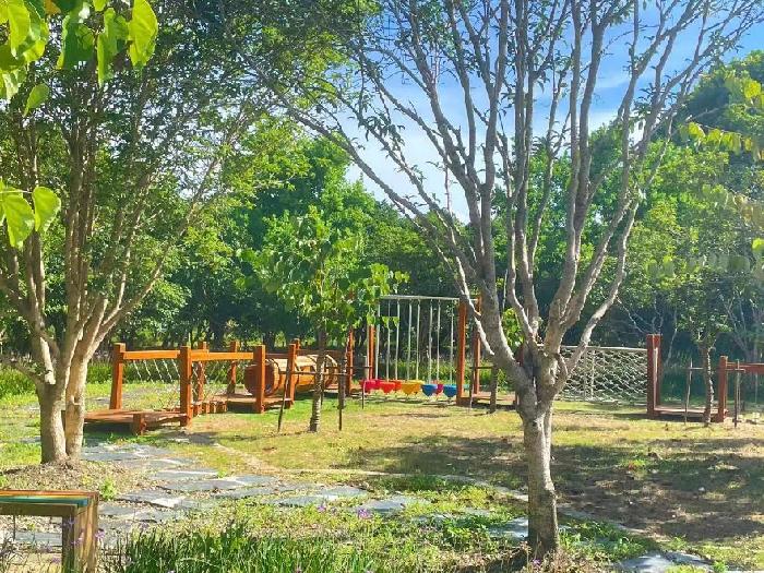 上海市金山区张堰镇百家村开放休闲林地内的儿童游乐区。(谭索立 摄)