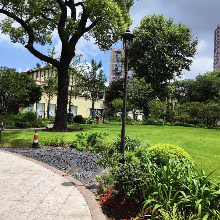 散步到上海衡山路和吴兴路交叉口,眼前出现一大片绿茸茸的草坪,这在寸土寸金的上海核心地段十分难得。沿着草坪中的花径深入,还能看到一幢鹅黄色的法式洋房。历史建筑与口袋公园相得益彰。