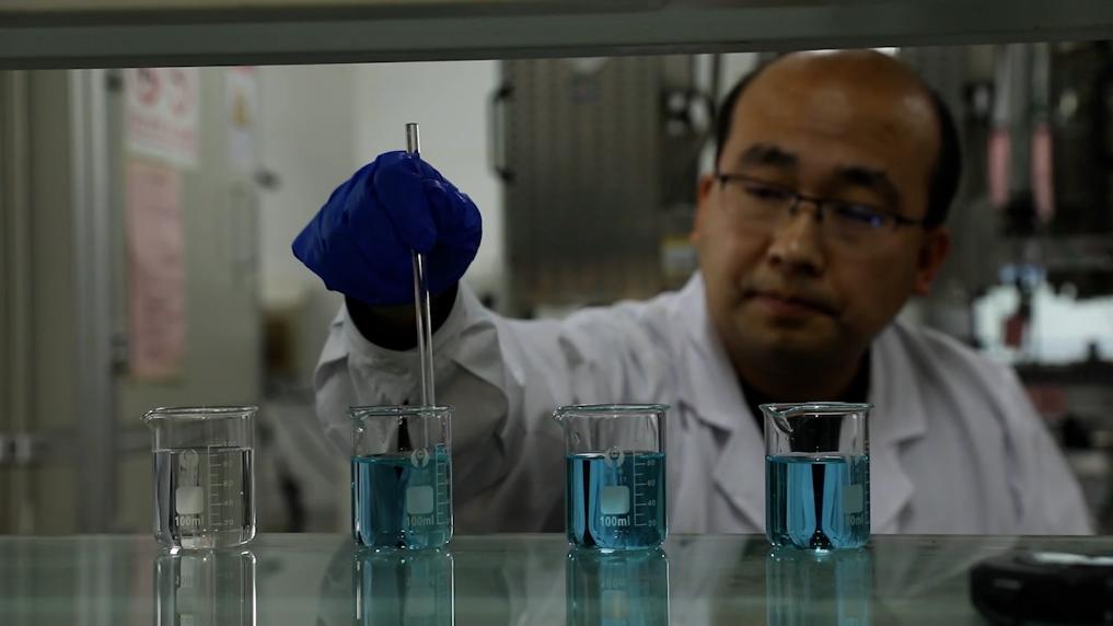 为证明疗效,有店员现场做实验:在一杯氢水和一杯自来水中,分别滴入“溶存水素浓度判定液”。约10秒后,自来水仍是蓝色,氢水则变成无色。店员又把制氢机的输气管插入蓝色自来水,1分钟后自来水也恢复成无色。