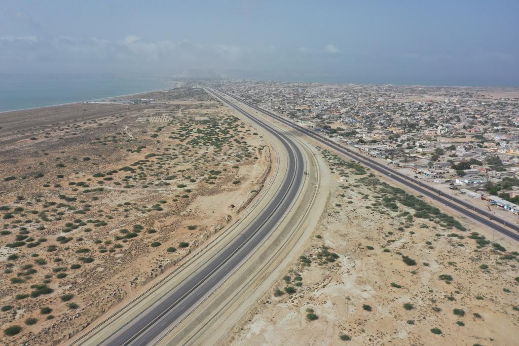 这是2022年6月3日在巴基斯坦西南部俾路支省瓜达尔航拍的瓜达尔东湾快速路。(新华社记者蒋超摄)