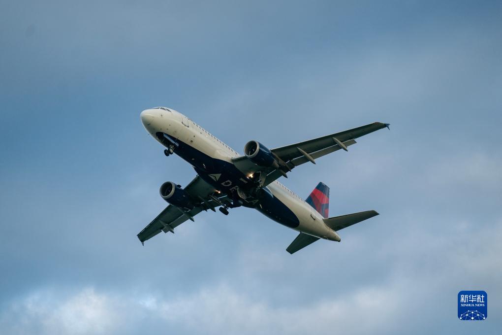8月16日,一架达美航空客机从美国弗吉尼亚州阿灵顿的里根国家机场起飞。新华社记者 刘杰 摄