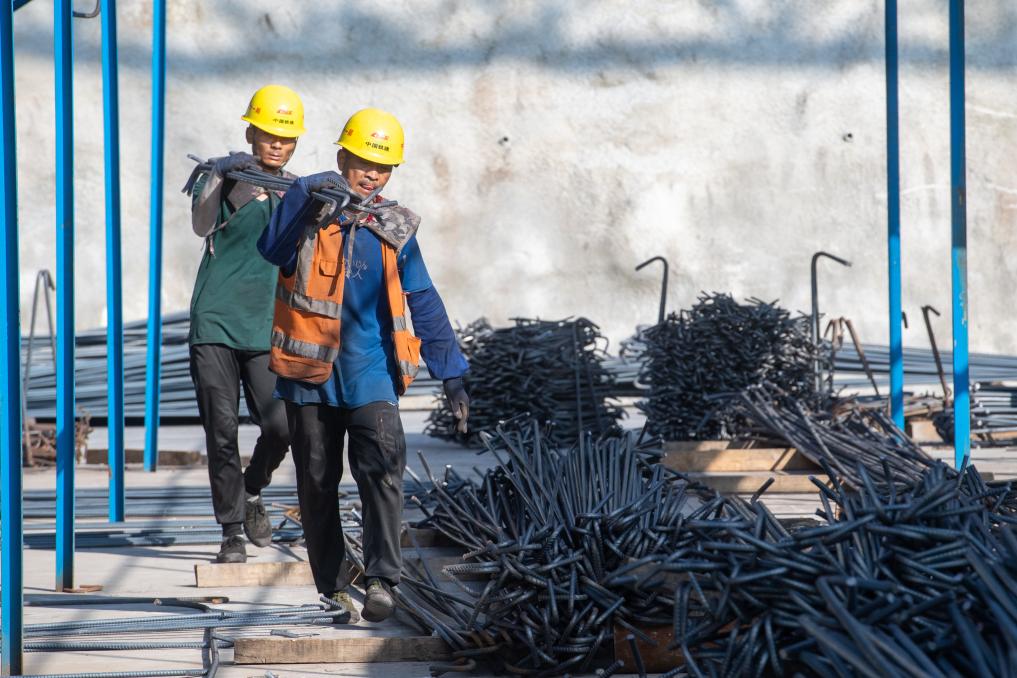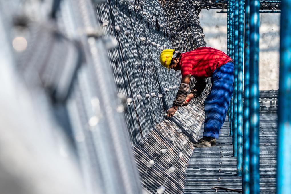 8月15日,在渝湘高铁重庆段建设现场,施工人员在进行施工作业。