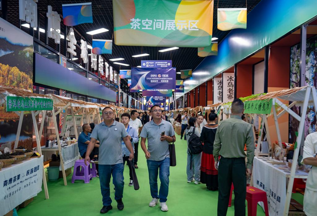 8月17日,第七届中国—南亚博览会首届南亚茶叶节在昆明滇池国际会展中心开幕,吸引了众多茶商和消费者前来品茗、采购。新华社记者陈欣波摄