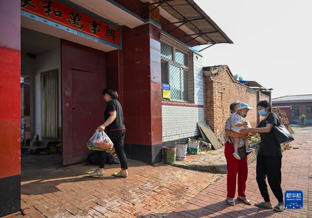 8月17日,天津市武清区黄花店镇邵七堤村村民返回家中。