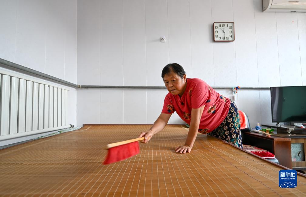 8月17日,天津市武清区黄花店镇邵七堤村村民回家后收拾房屋。