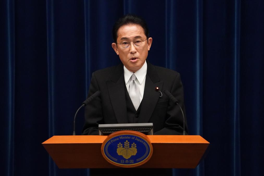 2021年10月4日,日本首相岸田文雄在日本东京首相官邸召开记者会。新华社发(Pool图片/花井亨摄)