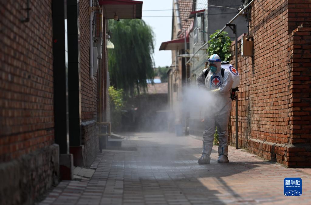 8月17日,工作人员在天津市静海区台头镇进行消杀作业。