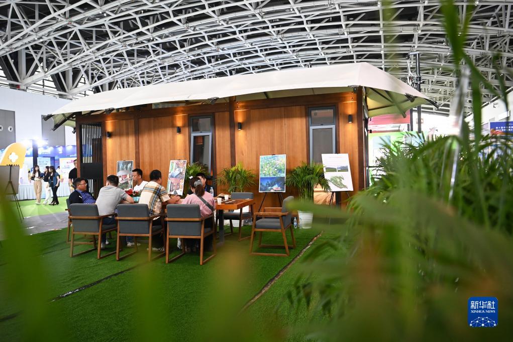 8月17日,参观者在文旅融合馆了解户外品牌。新华社记者 邹竞一 摄