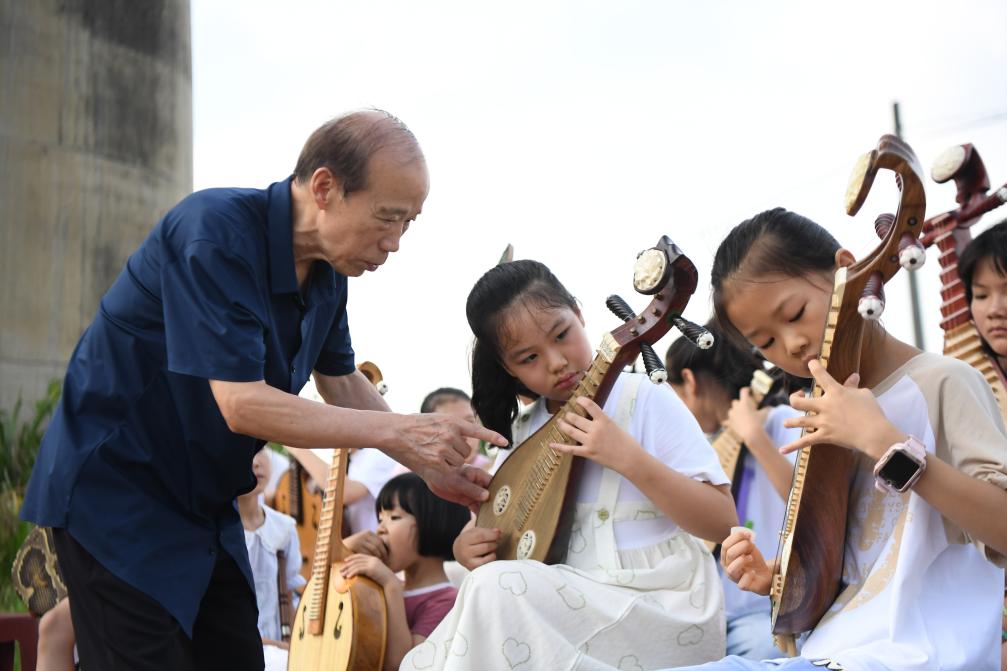 打造出这场“约会”的李舒尤老人,用他的公益音乐课堂,让200余名曾经不识乐谱、不懂民乐的孩子,学会了琵琶、二胡、柳琴、三弦、阮、笙等传统民族乐器。