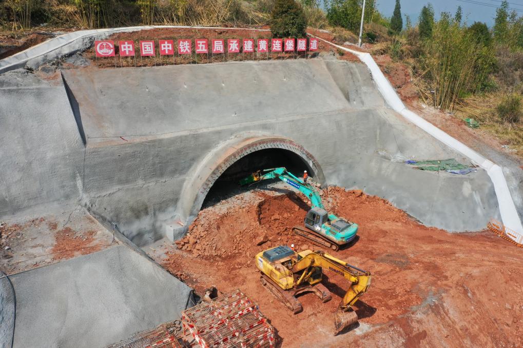 3月30日拍摄的成渝中线高铁首座隧道——黄连堡隧道施工现场。新华社记者唐奕 摄