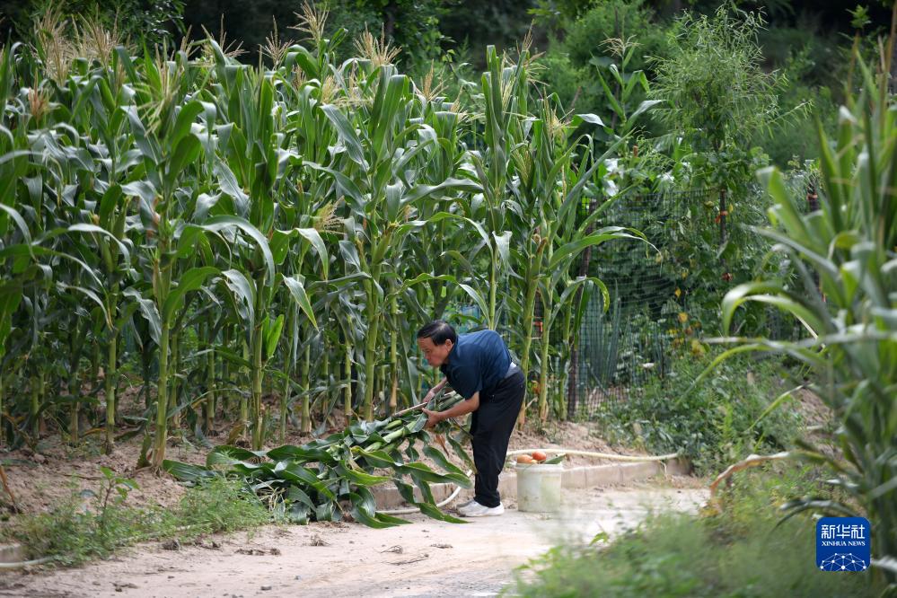 在石楼县龙交乡王家沟村,杨兴荣在地里干活(8月15日摄)。