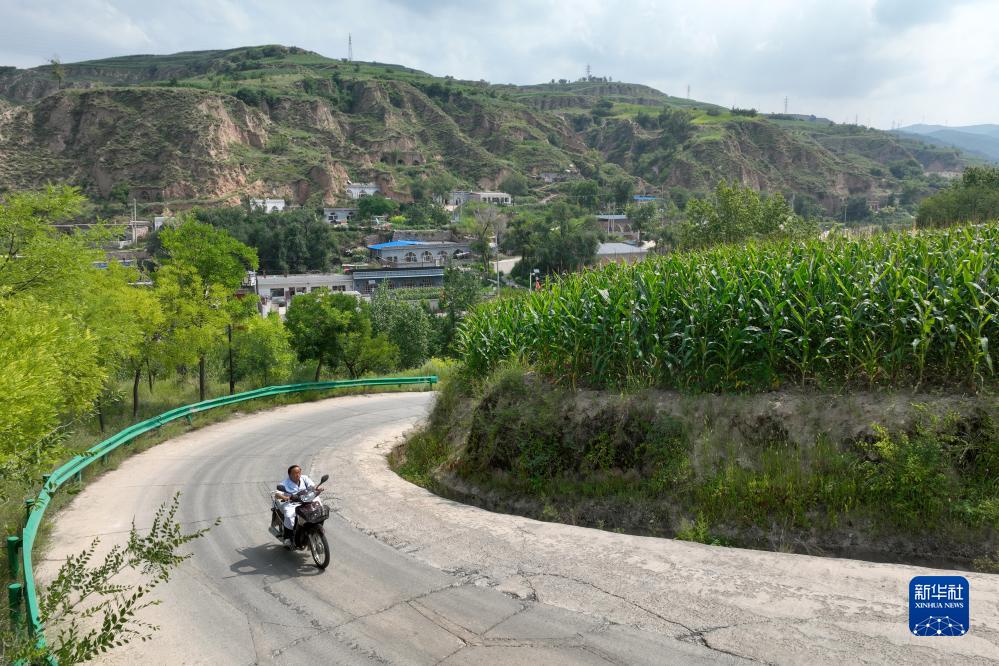 乡村医生杨兴荣在出诊途中(8月15日摄,无人机照片)。