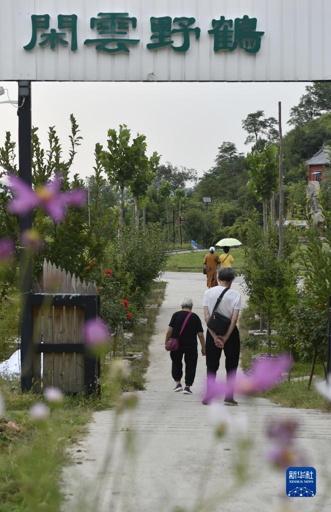8月17日,在汝州市大峪镇袁窑村,入住客人在云堡妙境民宿区内游览。