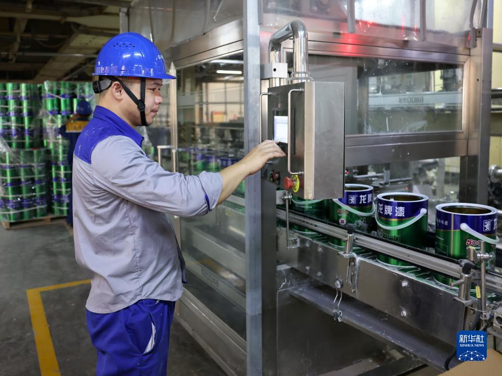8月19日,工人在龙牌涂料北京有限公司涿州分公司涂料车间包装生产线工作。