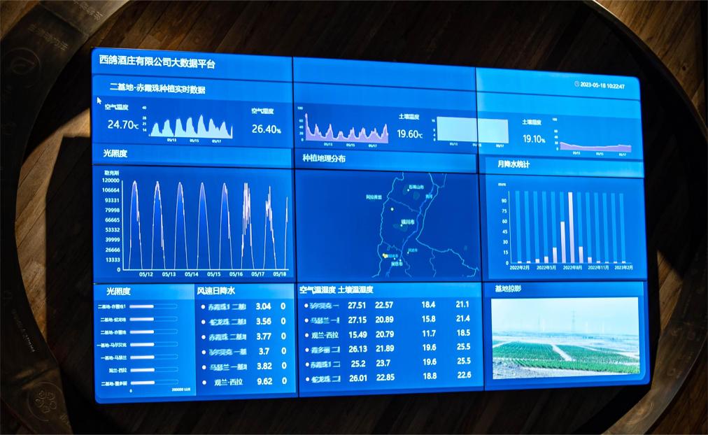 西鸽酒庄拥有葡萄园3万余亩,用传统人工方式采集相关数据,费时费力。因此,酒庄和院校合作开发了智能化葡萄园管理系统。这一系统基于互联网大数据管理平台,可以对葡萄园的空气温度、风速、土壤湿度等实时监测和分析。“系统内的数据非常精准,为葡萄园田间作业提供了科学依据。”张继丰说。