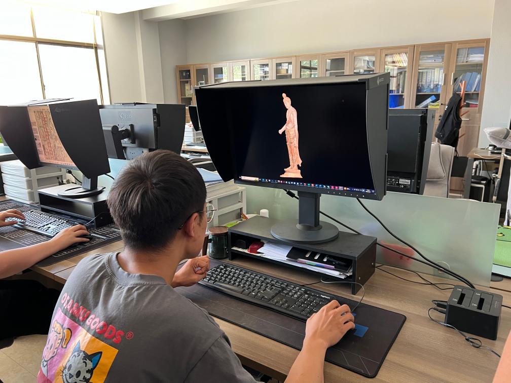 工作人员对彩塑进行三维重建。新华社记者徐壮摄