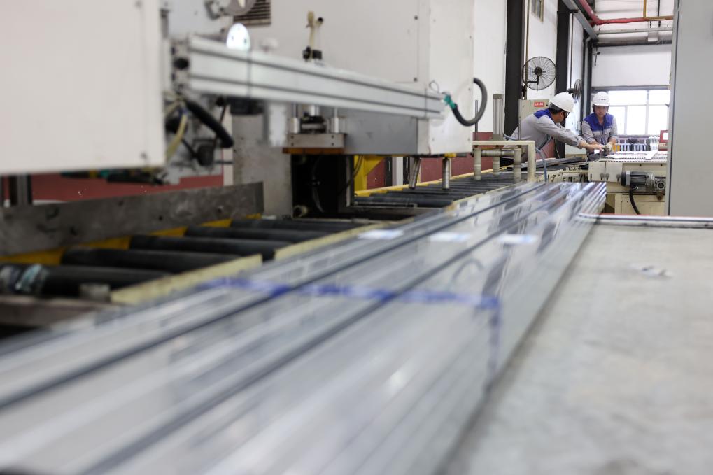 8月19日, 工人在北新建材涿州分公司龙骨车间工作。新华社记者 骆学峰 摄