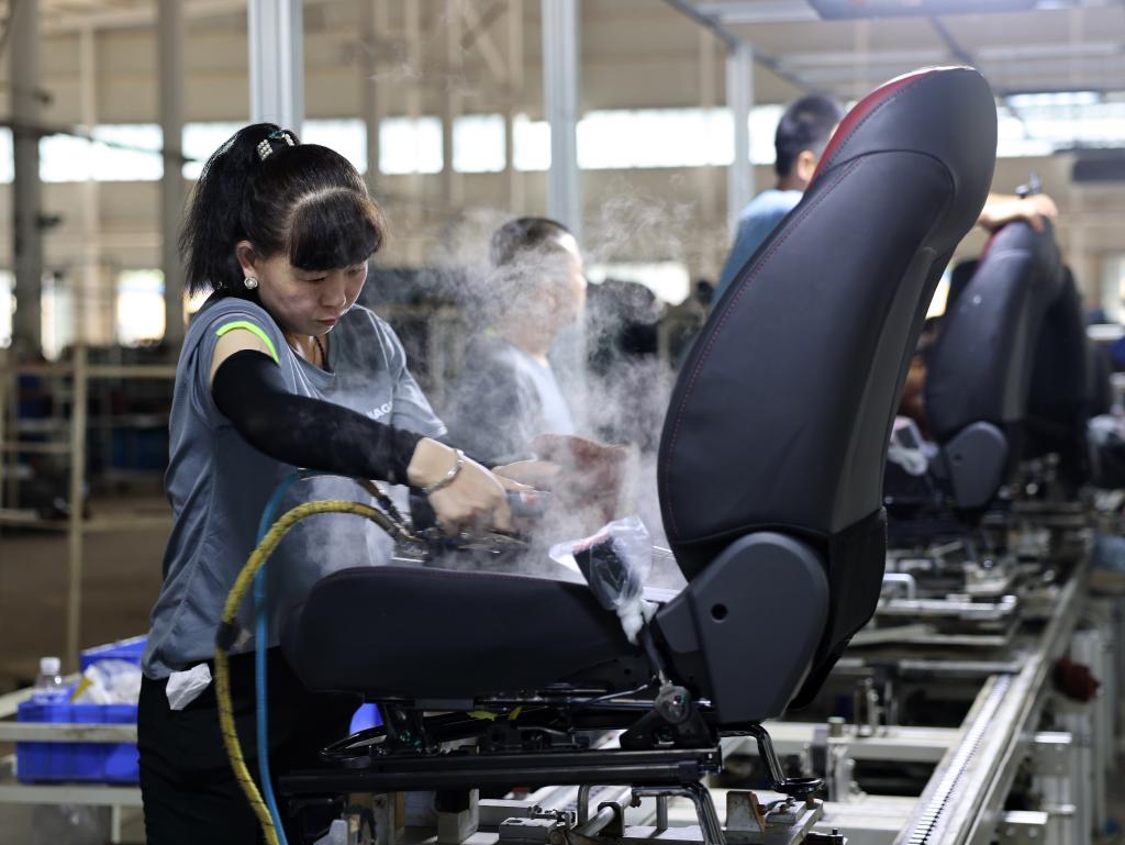 8月19日,工人在麦格纳宏立汽车系统(河北)有限公司生产车间工作。新华社记者 骆学峰 摄