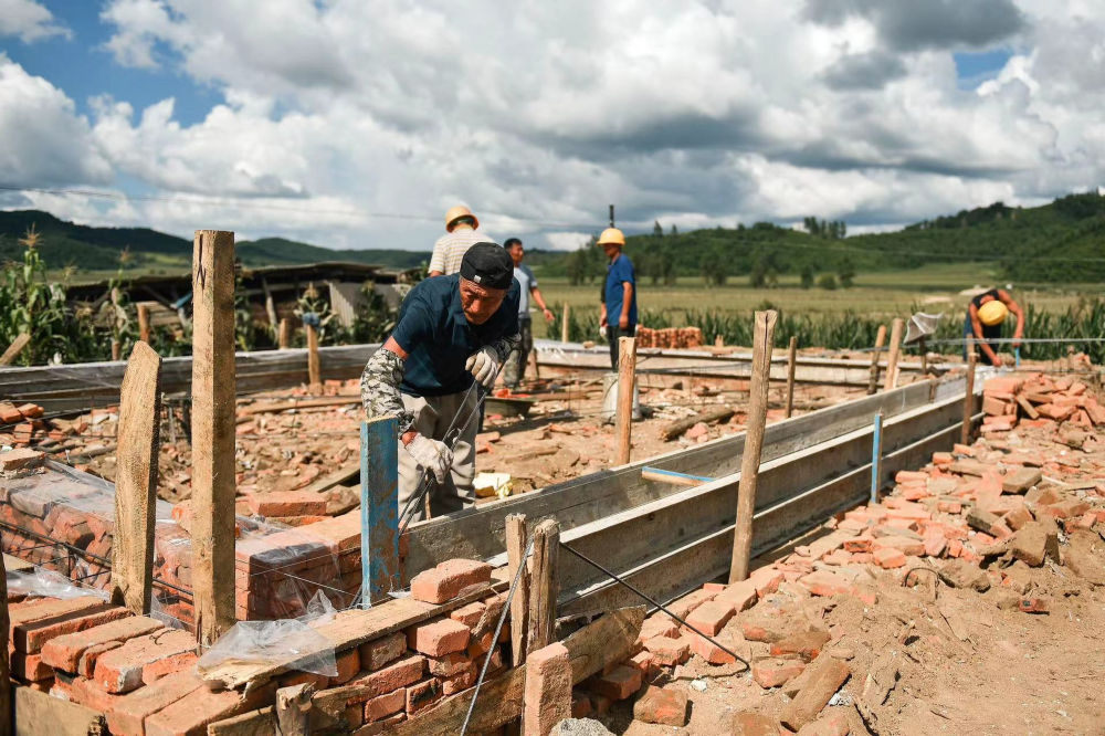 工作人员对吉林省舒兰市开原镇模范村的受损房屋进行拆除重建工作(8月16日摄)。新华社记者 许畅 摄