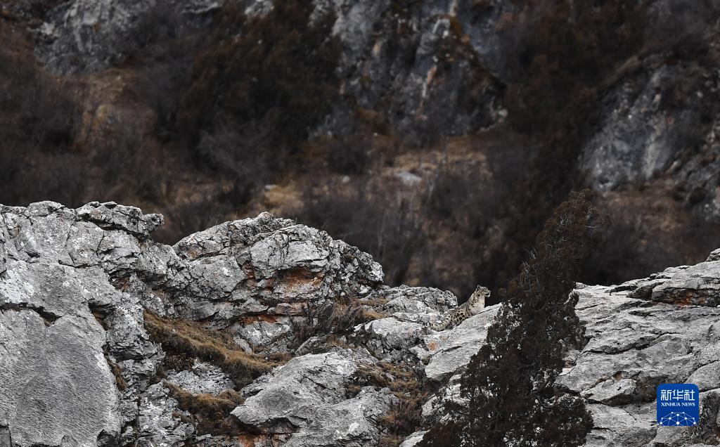 一只雪豹在位于三江源国家公园澜沧江源园区内的青海省玉树藏族自治州杂多县昂赛大峡谷内休息(2023年2月21日摄)。新华社记者 张宏祥 摄