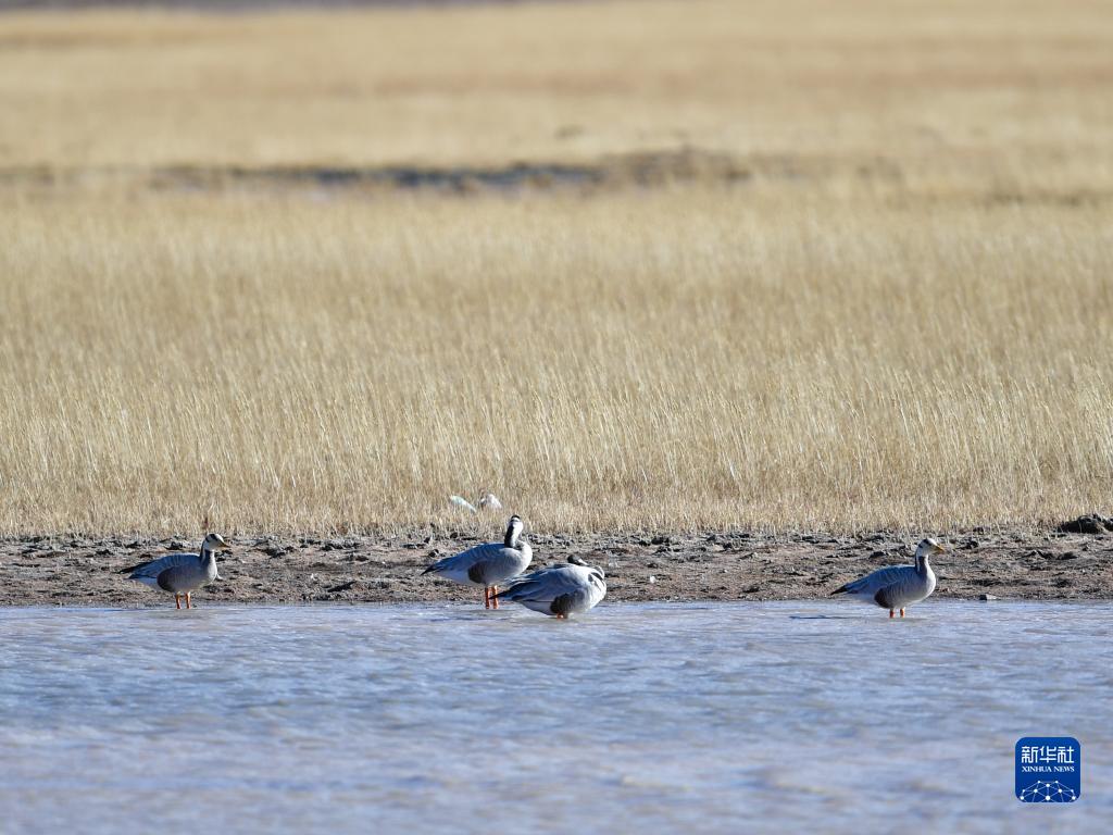 2020年10月30日,在青海省果洛藏族自治州玛多县境内的三江源国家公园黄河源园区,斑头雁在水中休憩。新华社记者 张龙 摄
