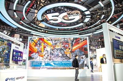 中国电信等企业参展“5G+工业互联网成果展”。记者 伍志尊 摄