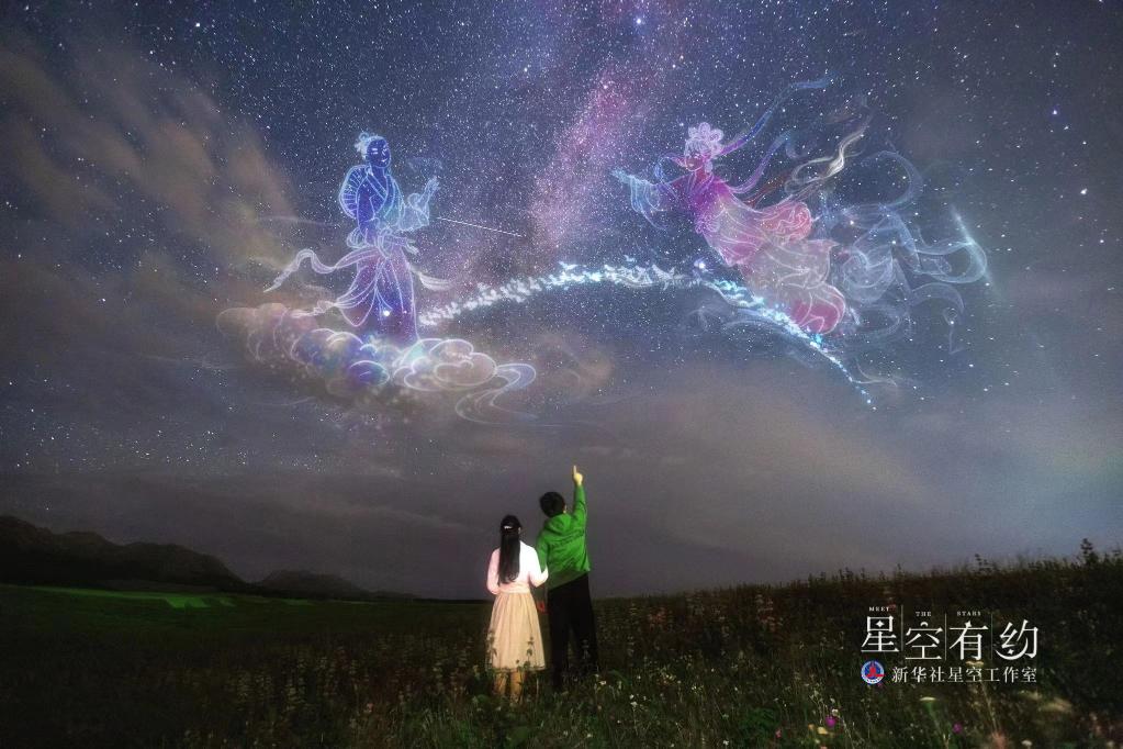 重庆市天文摄影爱好者戴建峰和绘画师王晓沫联合拍制的“牛郎织女银河鹊桥会”。(本人供图)