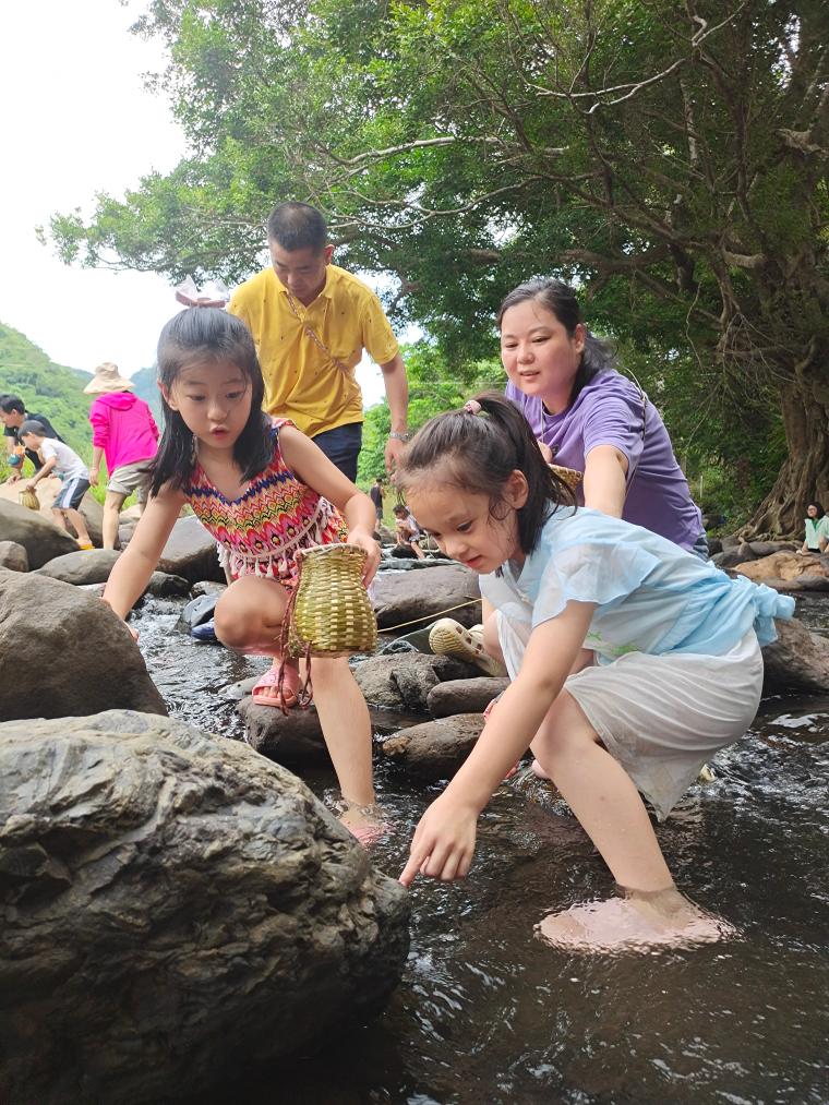 7月20日,孩子们在海南省昌江黎族自治县王下乡摸螺。(吕庆沼 摄)