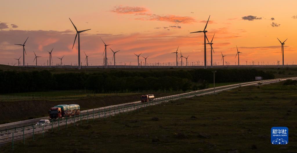 在河北张家口张北县境内随处可见的风力发电机(8月18日摄)。截至今年七月底,冀北电网风电装机达2595.2万千瓦。
