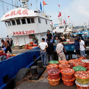 在浙江省舟山市,到港渔运船不时靠泊舟山国际水产城码头,带来一筐筐新鲜梭子蟹。从出舱、转运、分拣,再到打包、发货,无数人为了梭子蟹而忙碌,舟山国际水产城新鲜水产交易火热。