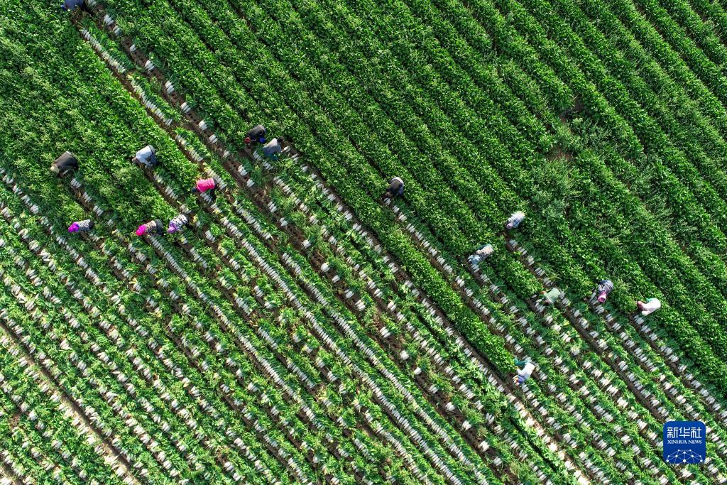 眼下,内蒙古鄂尔多斯市鄂托克前旗万余亩白萝卜进入丰收季,当地农牧民和加工工人忙着采收、运输、腌制、晾晒。