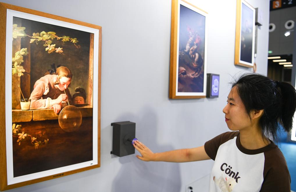 8月18日,参观者在数字文化馆体验与名画互动。新华社记者 邹竞一 摄