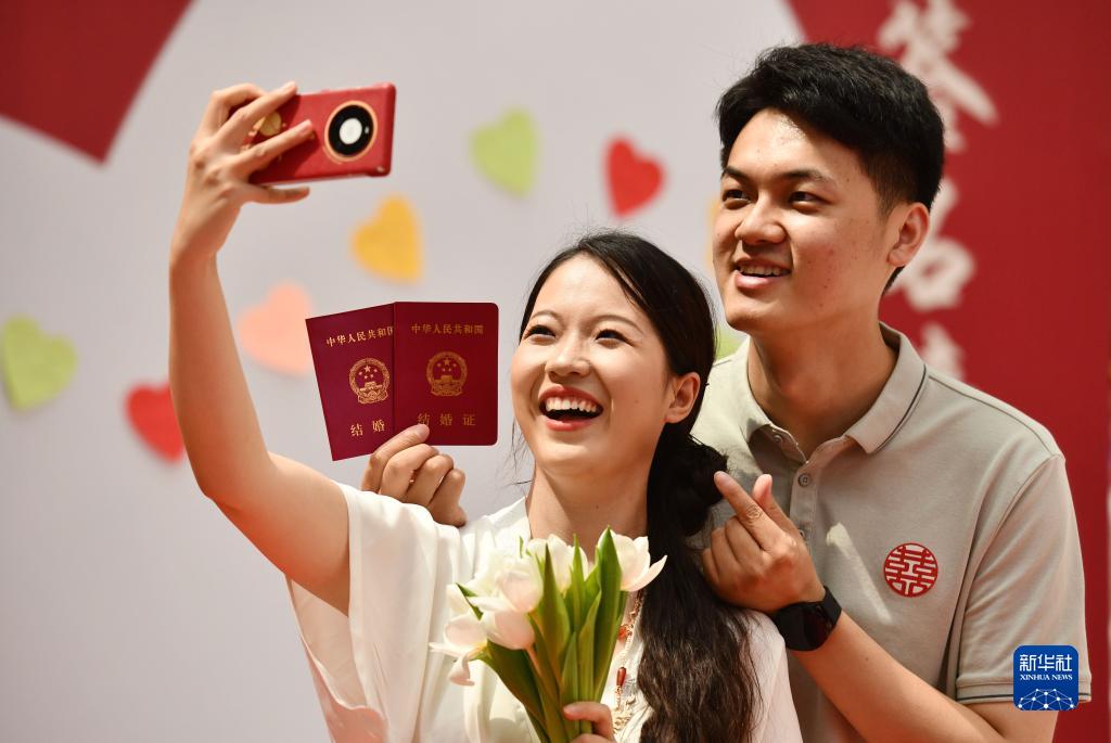 当日是七夕佳节,这一天是我国民间传说中牛郎织女鹊桥相会的日子,许多新人选择在这一天登记结婚。