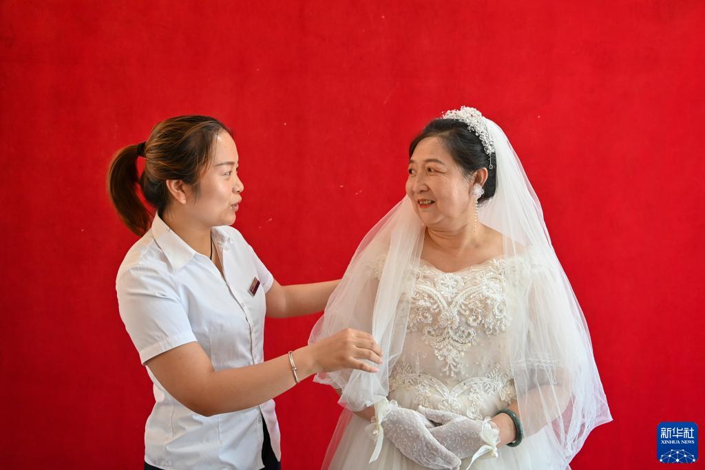 当日是中国传统节日“七夕节”,山西太原一小区联合摄影公司免费为50岁以上的中老年夫妇拍摄婚纱照,记录幸福生活瞬间,弘扬敬老、爱老、助老的传统美德。
