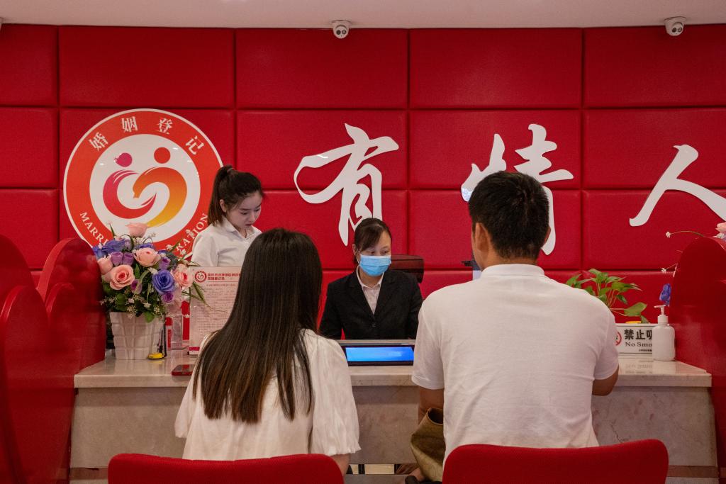 新人们在沙坪坝区民政局婚姻登记处登记结婚。张洪瑞 摄