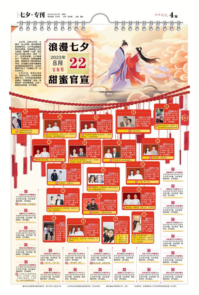 记者看到,当天出版的《沙坪坝报》4版以“浪漫七夕、甜蜜官宣”为主题,部分新人还配上了合照和专属誓言,版面风格既简约又喜庆。