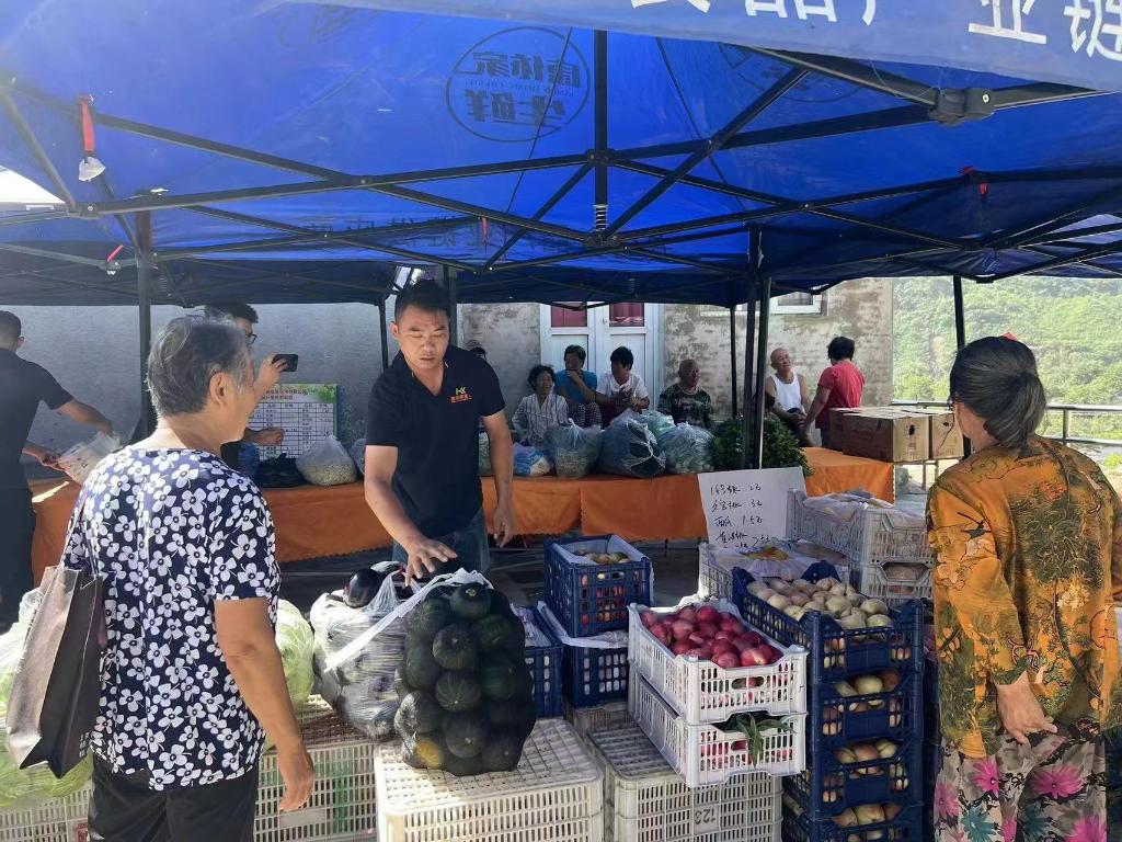 8月18日,门头沟区雁翅镇付家台村的“蔬菜直通车”摊位让受灾群众在家门口买到新鲜蔬菜。(门头沟区雁翅镇供图)