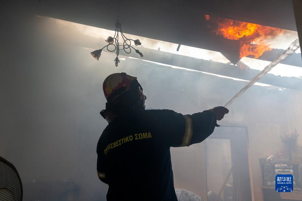8月22日,消防员在希腊首都雅典附近的查西亚村灭火。